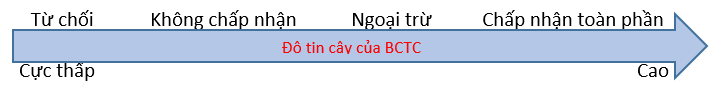 Mức độ tin cậy của BCTC sẽ giảm dần tương ứng với 4 ý kiến kiểm toán trên.