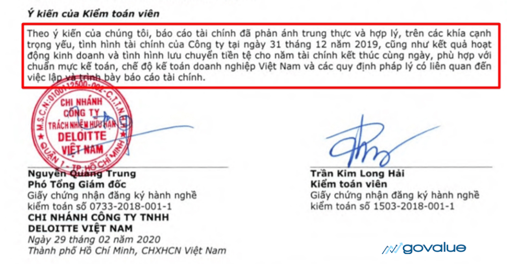 Hãy xem ý kiến của Kiểm toán viên (KTV) đối với báo cáo của doanh nghiệp ở đây là gì?
