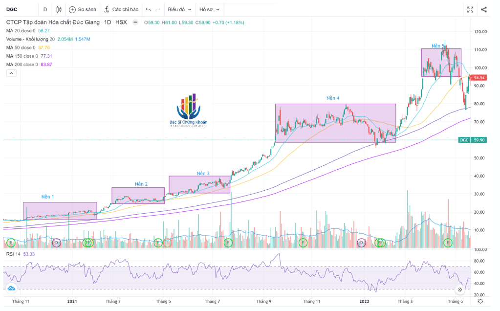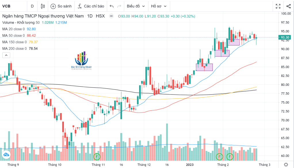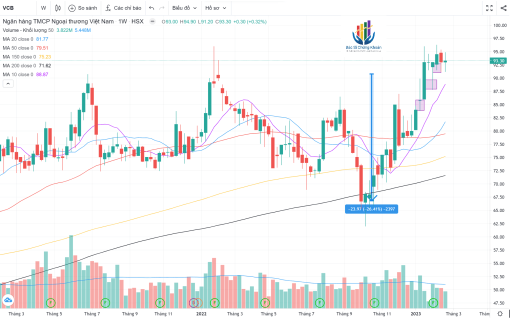 Phần tay cầm nên nằm trên MA10 (tuần) hoặc MA50 (ngày)