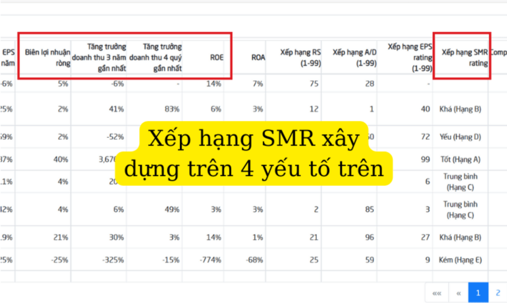 Lưu ý: Yếu tố tỷ suất lợi nhuận sẽ có Tỷ suất lợi nhuận trước thuế, Tỷ suất lợi nhuận sau thuế, do đó khi xếp hạng SMR Rating thực tế sẽ có 4 yếu tố.
